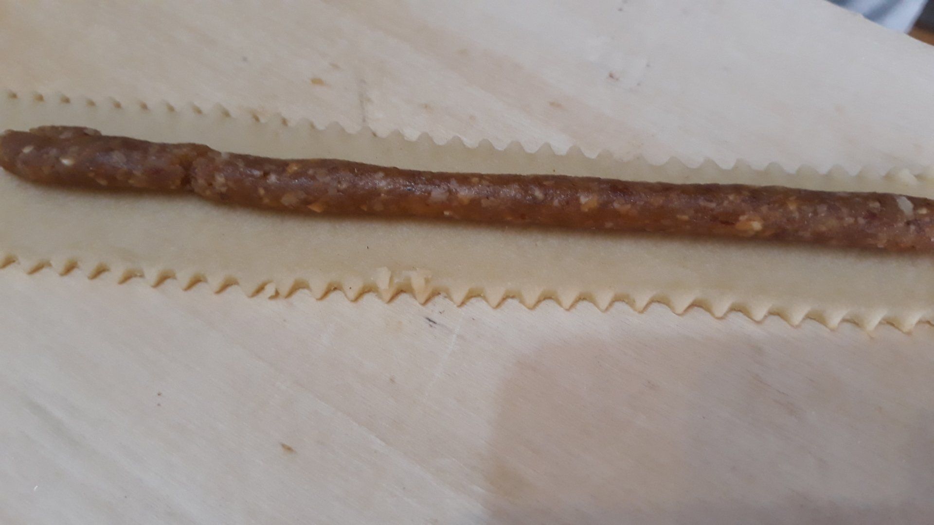 Zutaten: Für die Füllung: 1 kg Honig, 300 g geriebenes Brot, geriebene Orangenschale, 200 g gemahlene Mandeln, 200 g gehackte Nüsse, etwas Zimt, 2 Esslöffel bitterer Kakao, eine Tasse Kaffee Für Nudeln: 1,5 kg Mehl, 250 g Schmalz, 2 Eier (nur weiße), 150 g Zucker, eine Prise Salz.PREPARAZIONE RIPIENOSi den Honig 3 Minuten kochen, die Paniermehl dazugeben , Orangenschalen, Walnüsse und Mandeln, Zimt, Kaffee und Kakao. Es wird kontinuierlich gerührt, bis ein weicher Teig erhalten wird, nach dessen Abkühlung der Teig gefüllt wird. VORBEREITUNG PASTASi Schneebesen mit dem Eiweiß verrühren, Zucker, Schmalz und Mehl hinzugeben und mit etwas Prise Salz zugeben, bis ein homogener Teig entsteht, der nicht zu weich ist. Bereiten Sie die Blätter vor und erstellen Sie Rechtecke mit dem Schneidrad (lu rutigliu). Im Inneren der Stöcke befinden sich die Stöcke, die wir in der Zwischenzeit mit der Mischung der Füllung vorbereitet haben. Es entstehen verschiedene Formen von Cucciuleddi, die sich in einem Backblech mit Backpapier niederlassen und in einem vorgeheizten Ofen etwa 20 Minuten bei 160 Grad stehen lassen .
